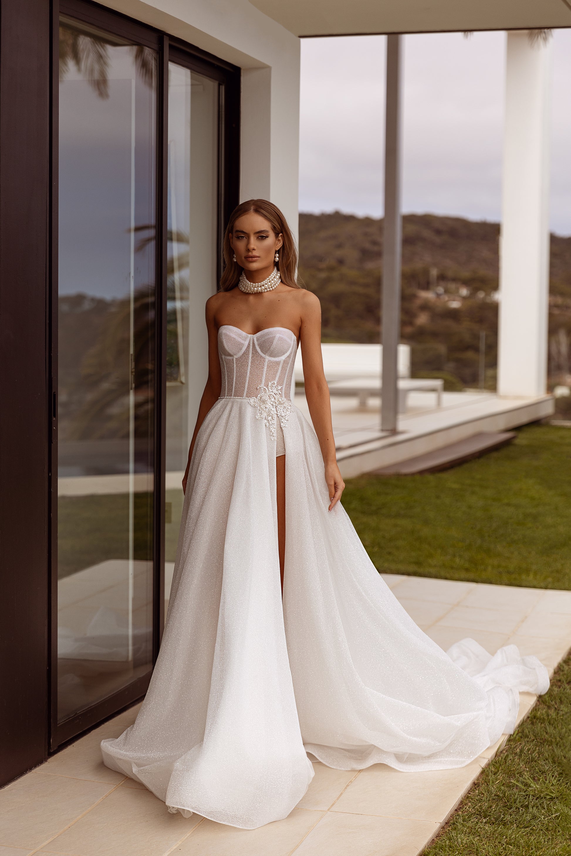 Bold, fierce, and unapologetically captivating—Elizabeth is the gown that makes a statement. Crafted from glittering ivory, its daring high slit and sweetheart neckline demand attention. The A-line silhouette flows with grace, while delicate appliqué details speak of romance. This gown is for the bride who knows her power and isn’t afraid to show it.