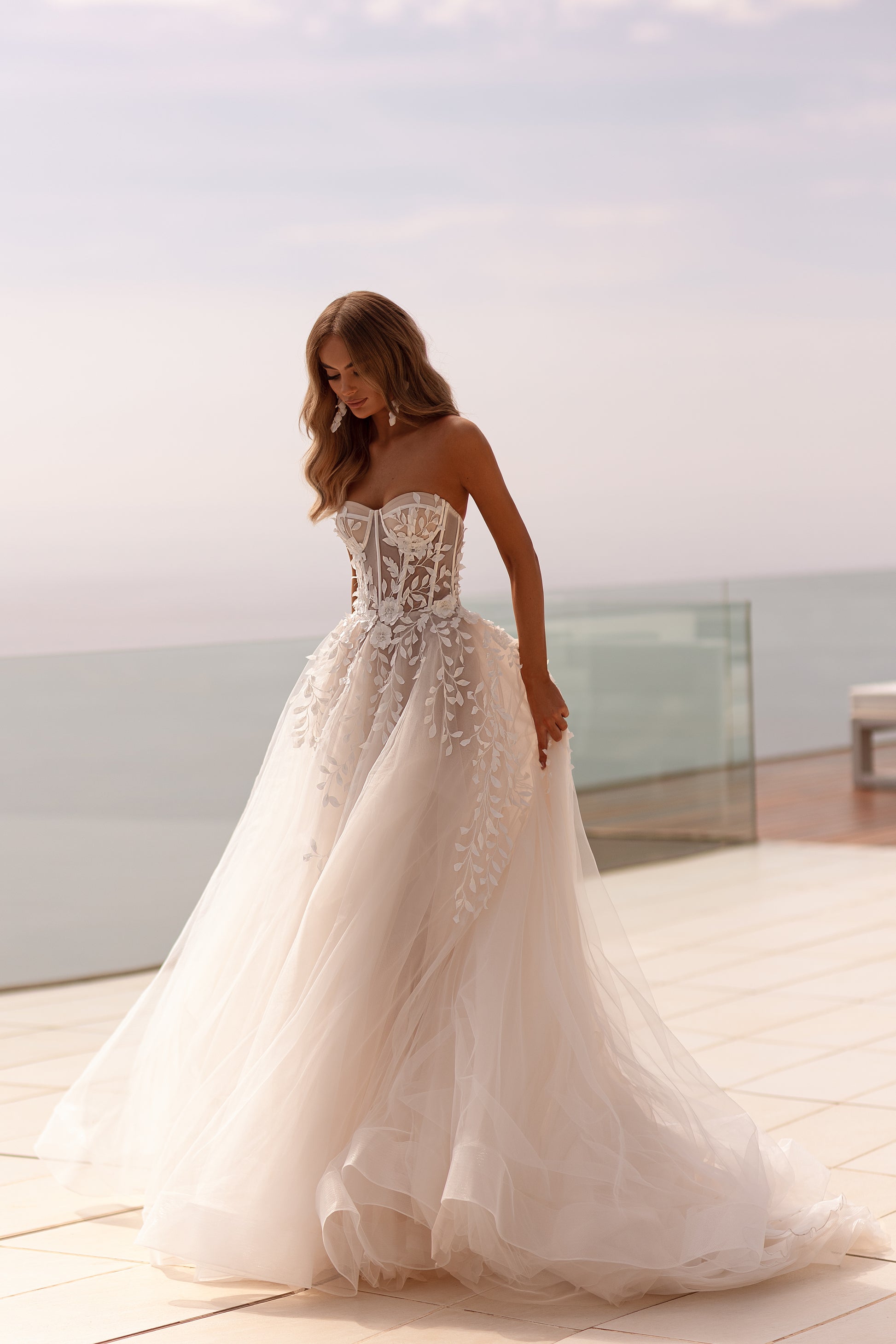 A masterpiece in cappuccino tones, Roma is a vision of grand elegance. Lush layers of airy tulle blend seamlessly with 3D floral accents, crafting a gown that feels like a dream. Equal parts opulent and romantic, this design celebrates femininity in its most refined, ethereal form.