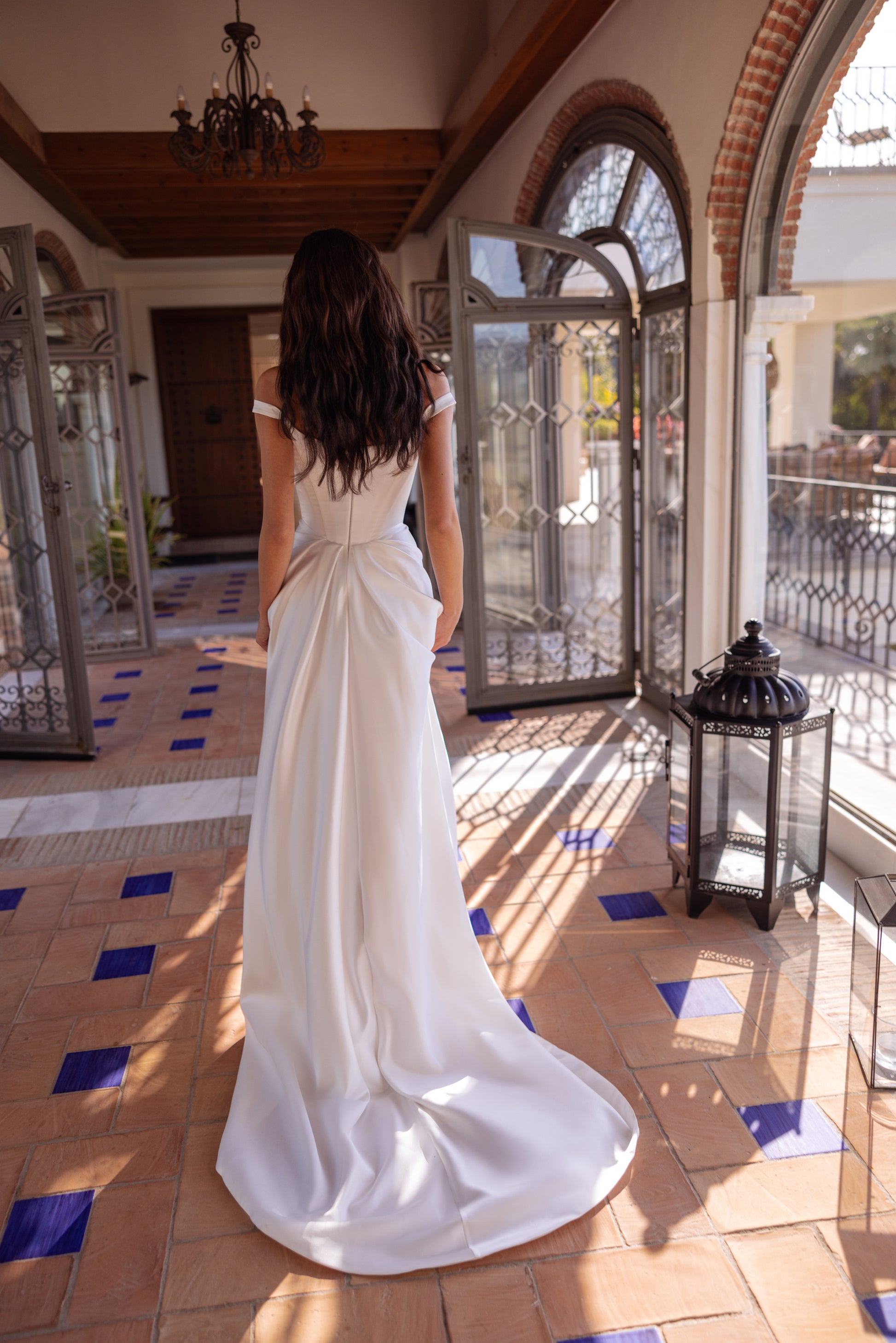 Understated satin elegance with a straight silhouette and fluid draping. A modern classic that feels effortless, confident, and timeless.